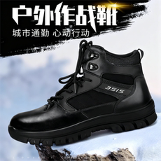 3515强人黑色户外作战靴男款战术训练鞋子冬季加绒防寒高帮雪地靴
