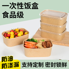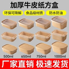 食品级一次性牛皮纸餐盒外卖打包盒长方形野餐露营便当盒快餐带盖