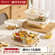 玻璃饭盒密封盒上班族微波炉加热便当盒密封餐盒大容量三分格减脂