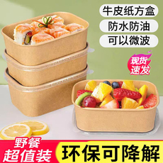 一次性餐盒牛皮纸方形打包盒水果快餐饭盒轻食野餐便当纸盒沙拉盒