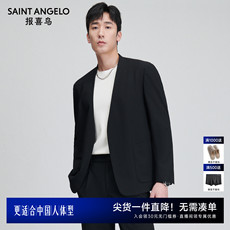 【无领便西】报喜鸟春季新款男士宽松休闲运动西服黑色上衣外套男