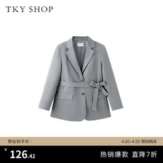 TKY SHOP烟灰色短款西装外套女春夏新款时尚便西设计感收腰系带