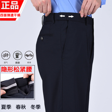 正品毛料春秋执勤裤藏蓝黑保安西裤男公务冬季工作裤子厚制服大码