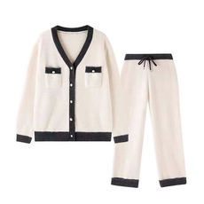 冬季加厚绒珊瑚绒睡衣保暖家居服法兰绒可外穿小香风甜美休闲套装