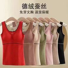 秋冬德绒保暖背心女加绒加厚内衣内搭打底衫文胸自发热带胸垫上衣