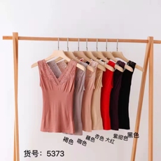 黛美芮5507蕾丝V领吊带背心女秋冬保暖加绒款修身带胸垫内搭上衣