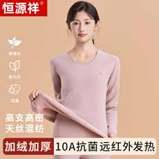 7A抗菌羊绒保暖内衣女款加绒加厚发热冬季秋衣秋裤套装打底衫内搭