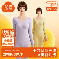 简云羊毛蚕丝保暖内衣女加厚加绒秋衣秋裤套装德绒发热线衣线裤冬