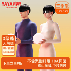 羊绒蚕丝德绒保暖内衣女半高领打底衫自发热无痕上衣加绒秋衣套装
