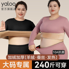 特大码保暖内衣套装女300斤加肥加大胖m德绒秋衣秋裤厚加绒中老年