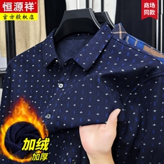 恒源祥冬天保暖衬衫男加绒加厚中老年长袖衬衣免烫打底爸爸装衣服