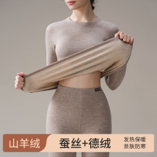 三枪保暖内衣女士山羊绒蚕丝中厚女保暖套装保温弹力秋衣秋裤冬季