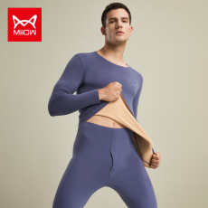 猫人男士秋衣秋裤套装纯棉全棉圆领棉毛衫抗菌秋冬款保暖内衣男款