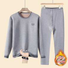 美宅保暖内衣男士加绒加厚秋衣秋裤套装羊羔绒打底2024年新款冬季