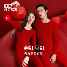 红豆居家保暖内衣男士秋冬加绒加厚中老年女秋衣秋裤打底套装