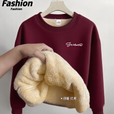 秋冬季ins加绒圆领卫衣宽松港风套头外套男简约百搭长袖保暖上衣