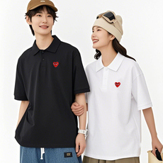 潮牌日系POLO衫短袖男女T恤刺绣爱心纯棉情侣装翻领结婚登记定制t