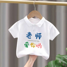 老师爱你哟~开学季纯棉白色Polo衫教师节男女童夏季卡通短袖T恤潮