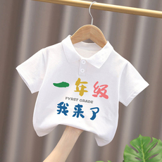 一年级我来了~开学季休闲洋气T恤男童女童白色纯棉透气短袖Polo衫