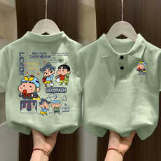 100%纯棉男童装插肩polo翻领短袖t恤夏季中大儿童宝宝印花上衣服