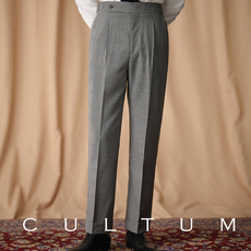 CULTUM 50%羊毛英式亲王格单褶西裤男修身商务正装高级感西装裤子