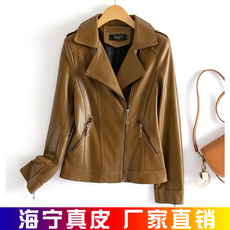 海宁皮外套女绵羊皮短款大码修身韩版百搭显瘦女士皮夹克机车皮衣