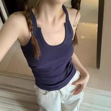 春夏季新款纯色吊带小背心女圆领设计感内搭打底修身显瘦无袖上衣