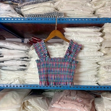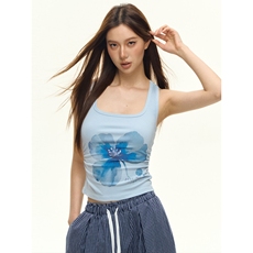 美式复古晕染小兰花工字吊带蓝色背心女夏季新款修身内搭外穿上衣