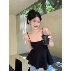 2025春夏季纯欲风辣妹吊带小背心女纯色方领修身显瘦设计感上衣