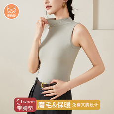 自带胸垫小高领中领保暖背心吊带女文胸一体式加绒贴身修身打底衫