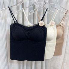 秋冬新款隐形粉底液内衣磨毛蕾丝性感修身吊带背心女一体内搭美背