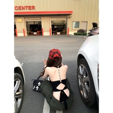 辣妹纯欲格子打底内搭短款小吊带背心上衣外穿修身小衫女夏秋季