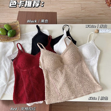 秋冬法式美背保暖磨毛时尚蕾丝V领吊带背心女带胸垫外穿修身内搭