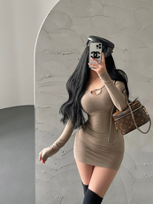YoungGirlDay 纯欲性感单边露肩修身显瘦长袖打底连衣裙包臀短裙