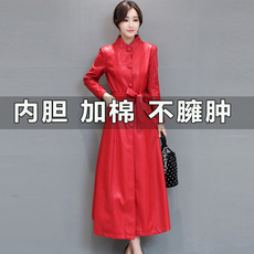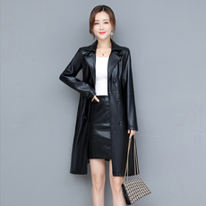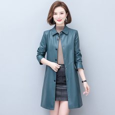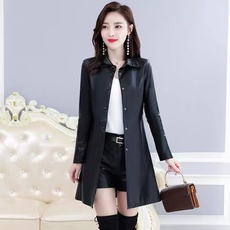 2025春秋新款海宁正品皮衣女中长款修身洋气大码显瘦加厚风衣外套