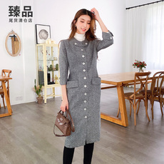 8530-收腰显瘦外套修身长款长袖毛呢大衣风衣 胸围86-98