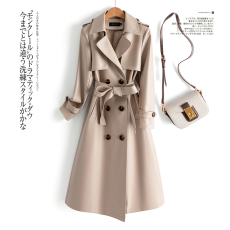 欧美时尚气质温柔风外套2025年秋季新品修身显瘦过膝风衣女中长款