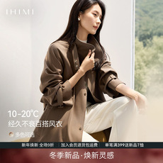IHIMI海谧高级感经典复古立领风衣外套女秋季修身显瘦时尚中长款
