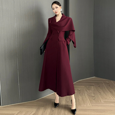 品牌中长款酒红色长袖风衣女2025修身显瘦A字版型单排扣简约外套