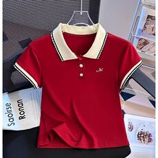 吴童童polo领印花收腰短袖针织衫女夏季韩系修身显瘦打底T恤上衣