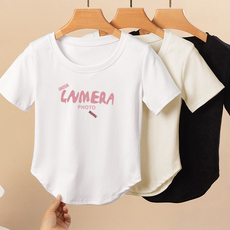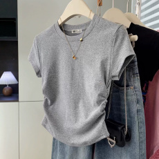 韩版短袖T恤弧形下摆夏季新款女2025小个子百搭短款修身显瘦上衣