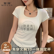 白色短袖t恤女2025新款免穿文胸一体正肩上衣夏季修身显瘦打底衫