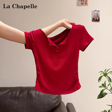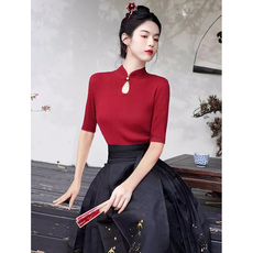 新中式国风旗袍领气质纯棉高级感中袖t恤女春夏修身显瘦立领上衣