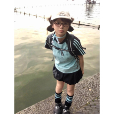 NERESUM夏季甜辣条纹正肩短袖T恤女修身显瘦圆领潮牌街头短款上衣