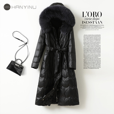 羽绒服女长款修身狐狸毛领连帽真皮外套海宁新款绵羊皮白鸭绒皮衣