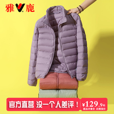 鸭鸭轻薄羽绒服女2025年冬季短款立领修身舒适上衣面包服90绒外套