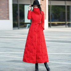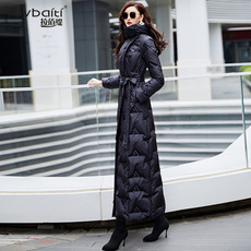 长款羽绒服女2024新款黑色高领保暖气质修身超长白鸭绒到脚踝383