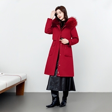 圣羽博雅新款中老年修身过膝长款妈妈装羽绒服女大毛领加厚外套