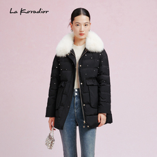 拉谷g折扣尾货女羽绒服冬新款显瘦修身连帽白鸭绒中长款保暖防风