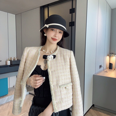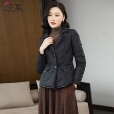 冬季高端定制羽绒小香风菱格纹修身短款保暖羽绒服外套配胸针